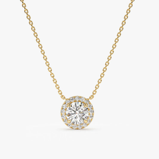 14K White Round Halo Necklace