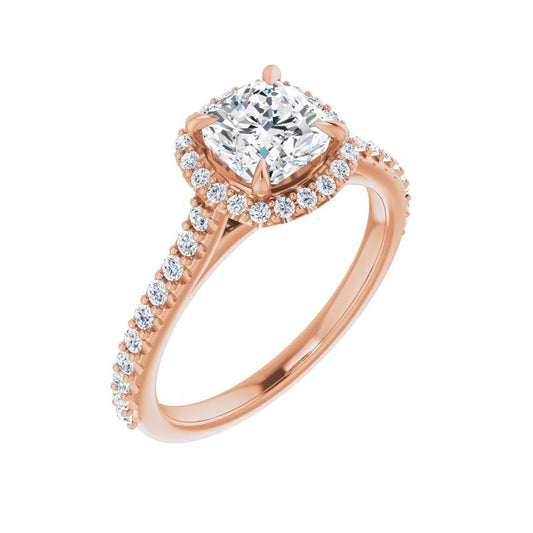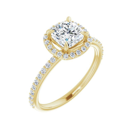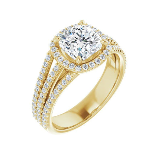 14K Gold Cushion Halo Triple Shank Engagement Ring