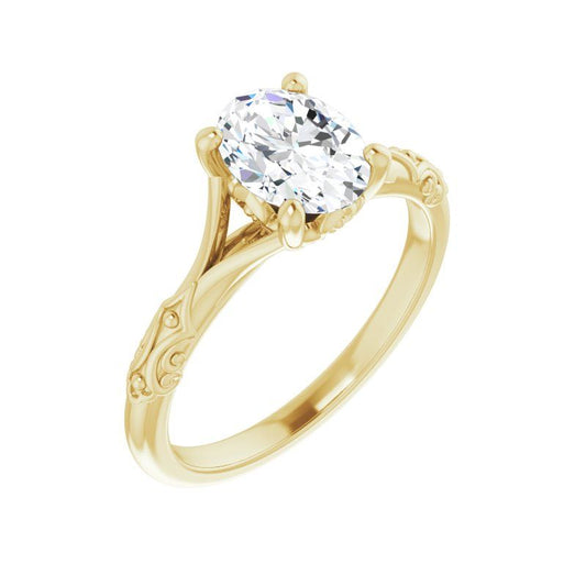 Lab Grown Oval Diamond Textured Shank Engagement Ring