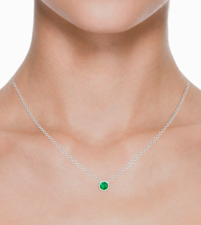 Round Bezel-Set Emerald Solitaire Gemstone Necklace