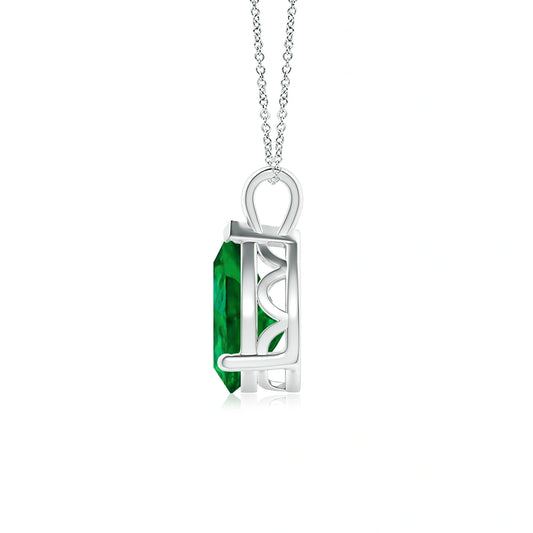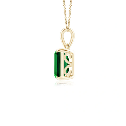 Emerald Cut Bezel-Set Emerald Solitaire Necklace