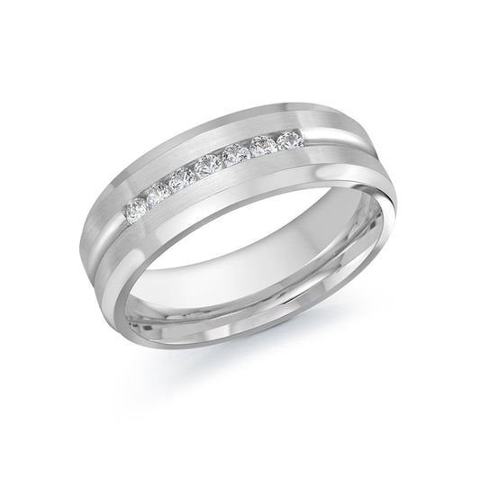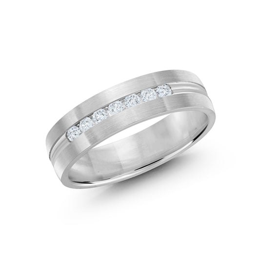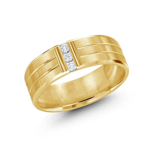 14K Gold Line Seven Diamond Men Band