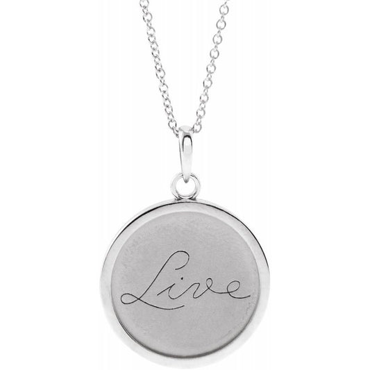 14K Gold Live, Love, Hope Engraved Disc 16-18" Necklace